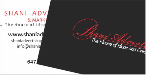 I like Shani design work. there design, printing, website, flyer design, Business Cards Printing, Card and paper quality is great. they are amazing thats all i can say for Shani Adavertising. must give them chance. i know you will never go anywhere once you use there services.
